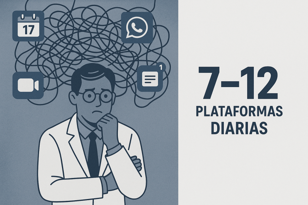 Y así hasta las 10 de la noche. ¿Te suena familiar? Claro que sí, porque el terapeuta promedio usa entre 7 y 12 plataformas diferentes solo para hacer su trabajo básico.